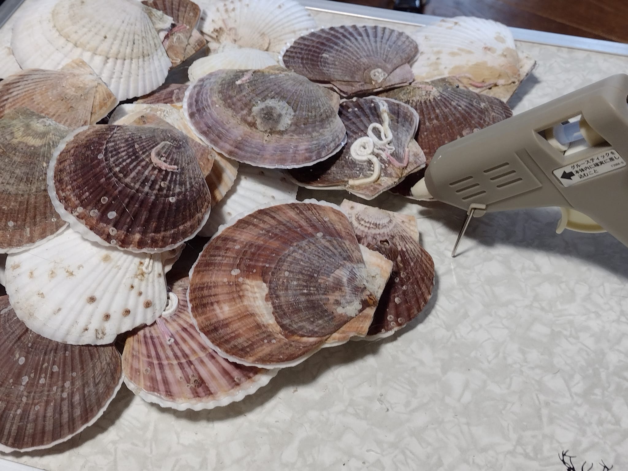 有効活用? 2024.06.242025.04.30耳吊り時にはじいたホタテ貝殻を真水で洗って、天日に干してひたすらグルーガンで接着、接着足りるかな🤔#海業 #岩手 #大船渡 #越喜来 #漁業体験 #体験学習 #探究学習