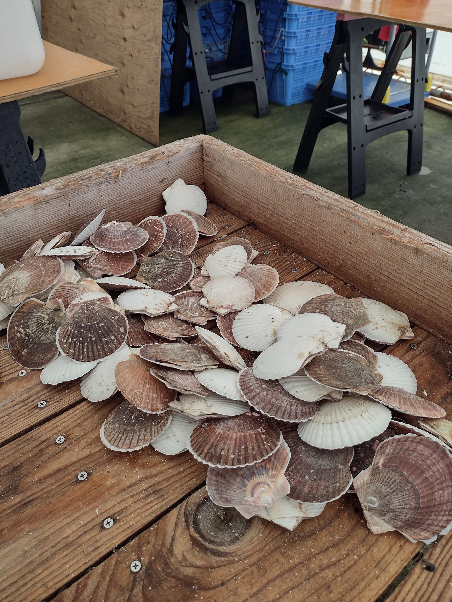 引き続き準備 2024.07.052025.04.30前回の投稿をご覧いただいたから『何するの?』とお声掛けいただいてました💦まあ、続きをご覧いただいて接着した貝殻を専用の機械で穴開けきちんと穴が空いているか、場所は大丈夫か、確認上手く空いていなければ、手動で開け直しなんてことをしてますで、あとは養成カゴロープに上げピンをセットして準備完了こちら数日後に行われた探究学習の『体験』に使用するために、空き時間にコツコツやっておりましたさて、当日はどんな感じだったか、次の投稿にご期待くださいませ♪#海業 #岩手 #大船渡 #越喜来 #漁業体験